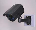 These are cameras designed to be mounted either inside or outside and incorporate built in Infra red (I/R) illumination. As light levels fall the Infra-red lights switch on automatically and the camera changes from colour to black and white. Black and white cameras require less light to work and respond to Infra-red lighting.